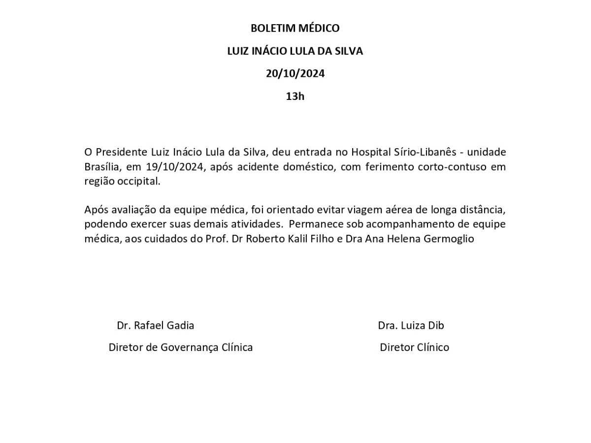 Boletim médico do presidente Lula por extenso