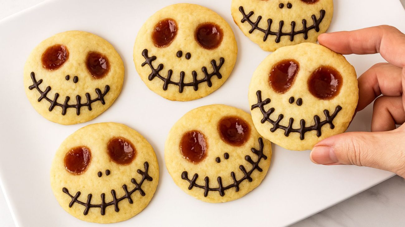 O segredo da receita está na geleia, que dá o toque final aos cookies de esqueleto.O segredo da receita está na geleia, que dá o toque final aos cookies de esqueletoFoto: Imagem gerada por IA/ND Mais